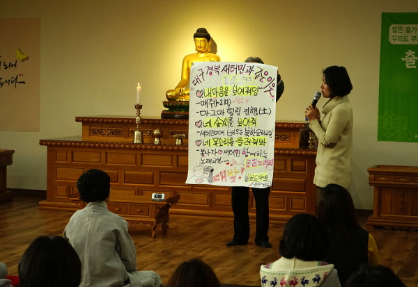 마산법당에서 진행된 영남권 전체 대상의 재미있고 의미 있었던 ‘새터민 정착 지원 봉사자 교육’, 송파법당 다양한 장소에서의 기획법회로 얻은 자신감, 김해법당 단감의 고장 진영에 불법을 전한 소식 들어보셔요~^^