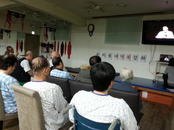 ▲ 연세사랑 요양병원 행복강좌. 휠체어를 타고 오신 분도 많았답니다.