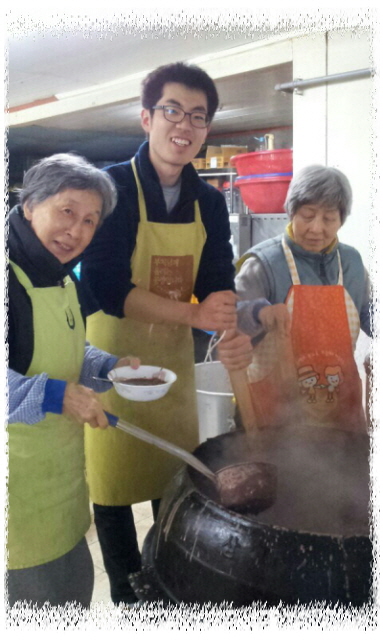 ▲ 동짓날, 공양주 법우님과 함께 팥죽을 끓이시는 할머니들~~. 왼쪽 김순기 할머니, 오른쪽 이상순 할머니~^^
