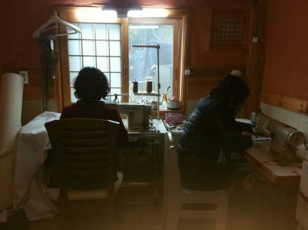 짧은 겨울해라 어두워지기 전에 끝내자고 서로 독려하면서 눈이 어두운 이는 재단을 하고, 눈이 밝은 젊은이들은 재봉틀을 돌려 순식간에 에코가방 20개, JTS 물품가방을 크기별로 5개 만들었습니다. 현수막에서 법륜스님의 사진을 오려낼 때는 조금 죄송했지만 쓸모 있는 물건을 만드니 스님도 좋아하실 것이라 생각했습니다. 모두들 처음 해보는 재봉질이며 재단, 실밥 따기 등이었지만 무엇보다 함께하는 즐거움으로 재미있고 신났습니다.