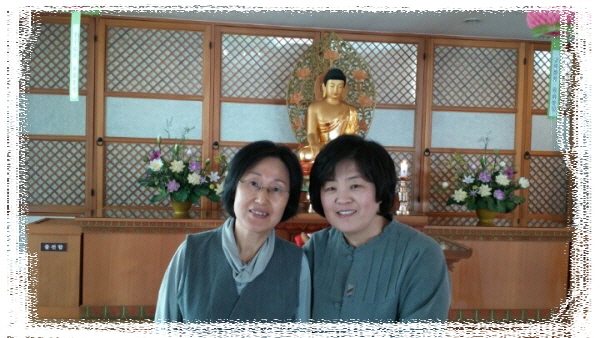 ▲ 법당의 방석 털고 봄단장 후 찰칵! 왼쪽 신봉금, 오른쪽 장경희 보살님~^^