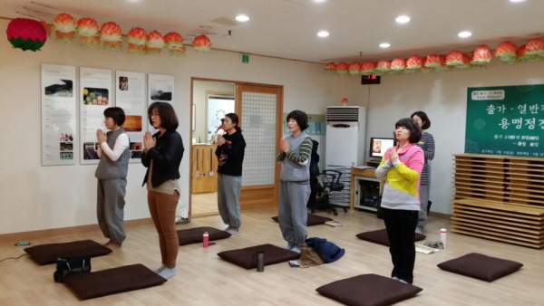 입재식에서 ‘나를 위해 수행 정진, 남을 위해 보시하고 봉사하는 보람된 삶’이라는 법문에 큰 감동을 받았고, 어떠한 경우에도 수행 정진해야 한다는 스승님의 가르침을 따라서 최소 3년은 하루도 빠짐없이 수행 정진해보자는 대결정심을 내었습니다.