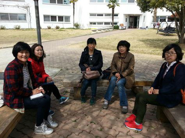 지난 1월이 거제법당 차례였으나 독감으로 계속 연기되다가 이제 봉사가 가능하다는 연락을 받고 봄불교대학생 두 명과 올해 경전반을 졸업한 새내기 활동가 두 명(그 중 한 명은 희망리포터인 저 허영심이랍니다), 그리고 담당자인 이영임 보살님 이렇게 다섯 명이 함께 간 것입니다.