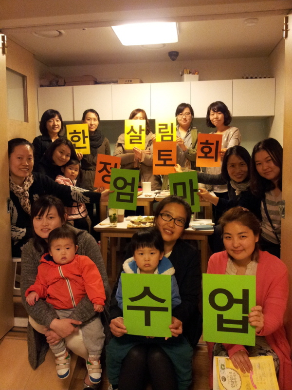 엄마수업은 ‘한살림’과 연계하여 한살림 내 소모임인 공동육아 엄마모임을 대상으로 진행하였습니다. 한살림은 사람과 자연, 도시와 농촌이 생명의 끈으로 이어져 있다는 생각에서 ‘자연을 지키고 생명을 살리는 마음으로 농사짓고 물품을 만드는 생산자들과, 이들의 마음이 담긴 물품을 이해하고 믿으며 이용하는 소비자들’이 함께 결성한 생활협동조합입니다.