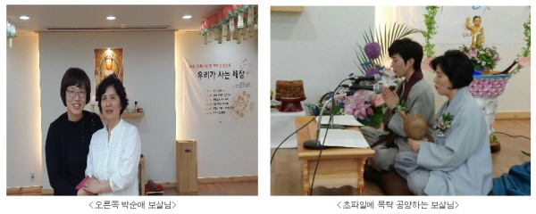 ▲ 오른쪽이 박순애 보살님 ▲ 초파일 목탁 공양 중~~