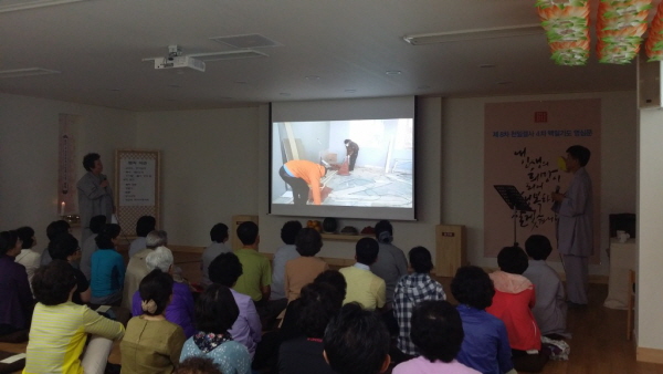 지난 4월 26일(일)과 4월 27일(월)은 구미법당 개원 이래 가장 바쁘고 긴장된 이틀이었습니다. 천일결사 입재식과 스님의 희망강연이 연달아 이곳 구미에서 열려 바라지를 했기 때문입니다. “와, 어떻게 해내지?” 처음엔 긴장감과 부담이 몹시 컸습니다. 그러나 차근차근 일을 나누고 자신이 할 수 있는 만큼 봉사하며 저마다 모자이크 붓다가 되어 아름다운 그림을 완성해 나갔습니다.