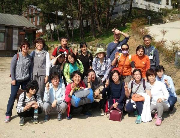 ▲ 봄불교대학 특강수련을 마치고 도반들과 함께. 앞줄 왼쪽 맨 끝이 정정숙 보살님~^^