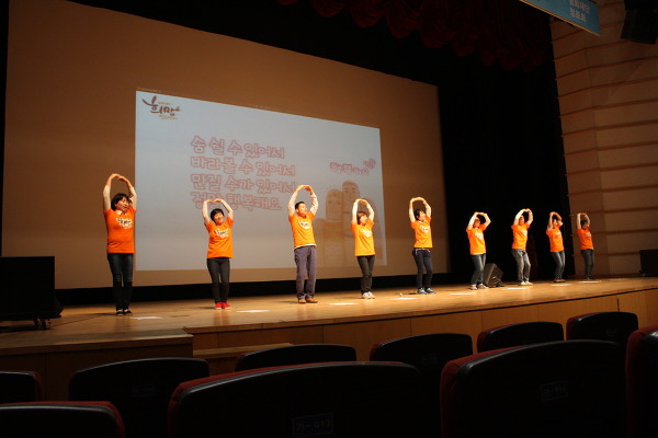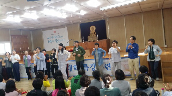 특강수련에 다녀온 후 봄불교대학 도반들은 수행 정진도 더욱 열심히 하고, 봉사도 눈에 띄게 활발해졌습니다. 5월 22일(금) 천안 희망세상 만들기 즉문즉설 강연회를 준비하면서 너나없이 홍보에 발벗고 나서서 강연장 1,031석이 꽉 차는 기쁨을 맛보기도 했습니다. 저녁반 도반들은 특강수련에서 공연했던 춤에 용기를 얻어 강연회 사전 공연을 맡았고, 주간반 도반들은 내부 안내를 맡아 이른 아침부터 행사가 마무리될 때까지 책임감 있게 봉사하는 모습을 보여주었습니다. 특강수련을 마치고 더 친밀해지고 내면이 단단해진 불교대학 학생들은 이제 법륜스님의 말씀대로 항상 행복하게 살아갈 준비가 된 것 같습니다. Posted by 최영미 희망리포터