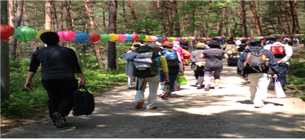 ▲ 문경수련원으로 올라가는 봄불교대학생들~~묵언이었답니다.