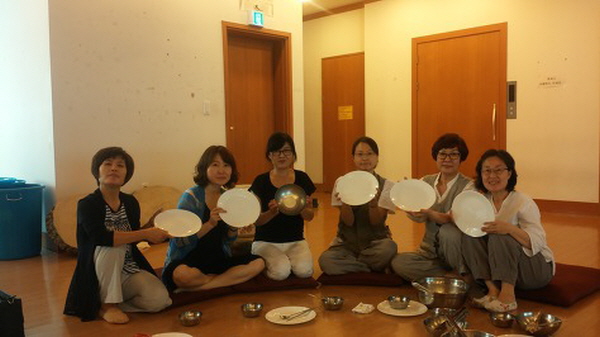 ▲ 그릇만 보면 음식 먹기 전인 것 같지요?^^ 공양 후 싹싹 닦아 먹은 빈그릇이 반짝반짝 빛납니다~*^^* 왼쪽 두 번째부터 천승진 보살님, 장복란 보살님, 박꽃초롱 보살님~^^