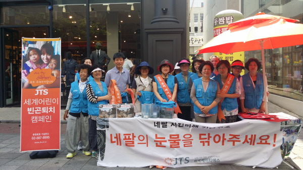 지난 4월 말 네팔 대지진과 그에 연이은 여진으로 많은 사람들이 희생되었고, 삶터를 잃은 수많은 난민들이 발생했습니다. 이들을 돕기 위해 많은 나라 많은 단체가 나서기도 했습니다. 청주정토회에서도 이들과 함께하기 위해 시내 중심가에서 5월 26일, 28일, 30일, 6월 2일, 6일, 9일 JTS 거리모금 캠페인, 네팔 지진피해 긴급구호 ‘네팔의 눈물을 닦아 주세요’를 실시했으며 모두 60여 명이 참여했습니다.