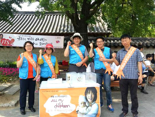 ▲ 전주한옥마을 JTS 거리모금 중~ 왼쪽에서 세 번째가 강대웅 법우님, 오른쪽 끝이 송평수 거사님