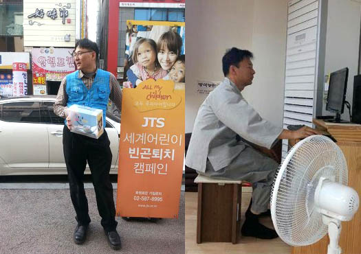 두 분의 차이점을 먼저 살펴볼까요? 두 분 중 아직 미혼이고 큰 키에 체격도 좋은 강대웅 법우님은 JTS 거리모금과 법당 시설담당 소임을 맡고 있습니다. 이에 반해 기혼이고 마음씨 좋은 아저씨 같은 인상을 지닌 송평수 거사님은 토요일 수행법회와 일요일 새벽 정진 담당을 맡고 있답니다.