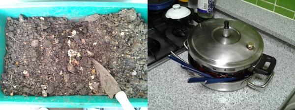 ▲ 음식물 쓰레기 화분 & 냄비의 열기를 이용한 식기소독
