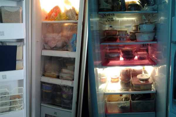 ▲ 냉동실과 냉장실의 비닐 문. 냉장실 칸칸이 이름이 적혀있네요~^^