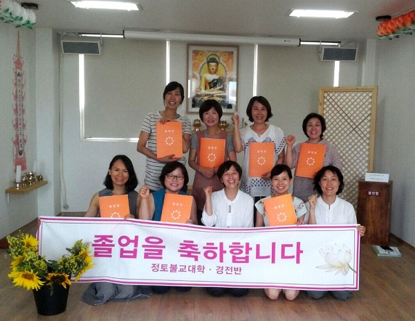 경전반 12명이 입학, 졸업자는 10명, 한 사람 한 사람 ‘내가 주인이다’는 마음으로 매월 돌아가면서 사회, 영상, 집전 등 한 가지씩 소임을 맡아 수업을 진행해 왔는데, 이런 역할 분담으로 도반들과의 더욱 돈독해질 수 있는 계기도 되었답니다.