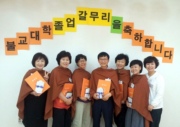 가을 불교대학 총 10명 중 주간 6명이 졸업을 했습니다. 졸업생들은 대부분 50대로 삶에 대한 연륜과 여유를 지닌 이들인데, 거기에 불법 만난 지혜까지 겸비하게 되었습니다.