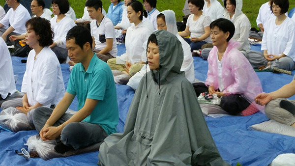 바닥에 깐 천막에 빗물이 고여 양말이 젖고 나중엔 엉덩이까지 젖었지만 통일을 향한 우리의 기도는 멈추지 않고 중도에 그만두는 이 한 명없이 잘 마쳤습니다.