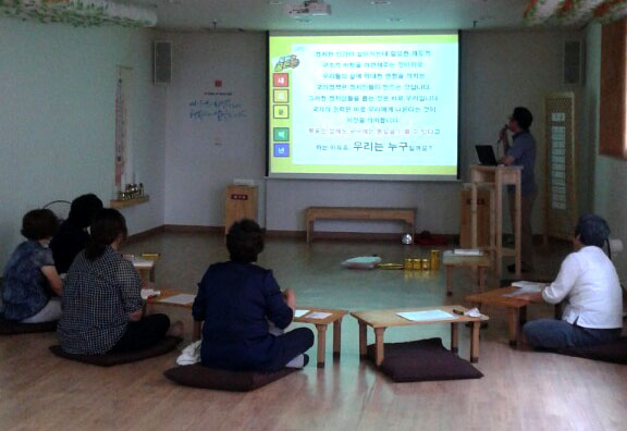 법당을 가득 채운 열띤 토론이 통일이 한층 가까워져 옴을 느끼게 만드는 시간이었습니다. 투쟁과 전쟁을 뛰어넘어 협상과 타협에 의한, 평화적이고 자주적인 통일만이 우리 후손에게 물려줄 귀하고 큰 선물이라 여겨집니다. Posted by 허명자 희망리포터