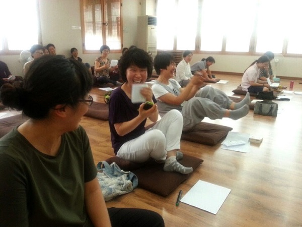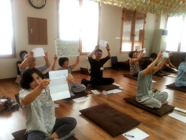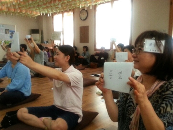 ▲ 문제를 하나씩 풀면서 통일에 대한 더욱 긍정적이고 신나는 에너지가 생겨났습니다. 정토회를 여러 해 다닌 보살들도 오늘처럼 재미있는 날은 처음이라며 마음나누기를 했습니다.