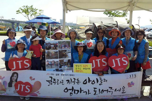 ▲ JTS 거리모금. 굶는 아이가 없길 바라며(뒷줄 왼쪽 세 번째가 귀요미 딸과 함께 나온 이예승 님)