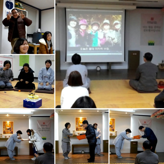 그동안 찍었던 사진들로 모아진 동영상이 상영되고, 졸업장 수여식이 거행되었습니다. 도반들의 박수 속에 수여받은 졸업장은 뜻깊었습니다.