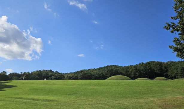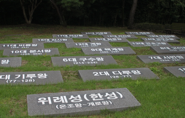 “이곳은 부여 왕릉원 또는 능산리 고분군이라고 불리는 곳입니다. 왕들의 무덤이 여기 있습니다. 제 뒤편으로 있는 두 개의 무덤은 가짜 무덤입니다. 하나는 의자왕의 무덤이고 하나는 의자왕의 아들 부여융의 무덤입니다.