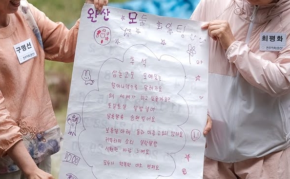 ▲ 익산모둠은 휴대전화로 아이돌을 응원하듯 모둠을 소개했습니다.