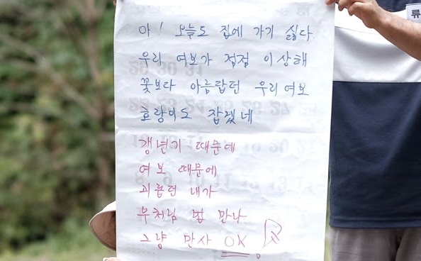 '오늘도 집에 가기 싫다. 꽃보다 아름답던 우리 여보. 호랑이도 잡겠네' 라는 시구가 인상적입니다. 가정의 평화를 빕니다.