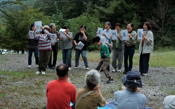 아쉬우니 마지막으로 연기법을 체험하는 몸놀이를 한 판 하고 헤어집니다. 전주지회의 심장, 영상감독 배기숙 님이 준비한 율동에 맞추어 몇 바퀴 춤을 춥니다. 오늘의 노래는 김수철의 ‘젊은 그대’. 숲이 떠나가도록 젊은 그대를 깨워봅니다.