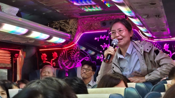 마곡사로 향하는 버스 안에서 색깔로 자신을 표현하여 소개하는 시간을 가졌습니다. 재치 있는 회원들이 많아 이름과 얼굴이 쉽게 기억에 남습니다. 어느새 버스 안에 무지개가 뜬 한폭의 풍경화가 그려졌습니다.