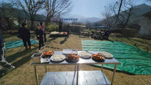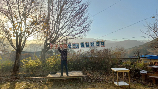 이날은 겨울이 무색할 만큼 햇살 또한 따사로웠습니다. 그 따스한 햇살 아래 지회별로 모여 앉아 직접 담근 김치에 두부와 삶은 고구마를 곁들인 점심을 먹으니 그 무엇과도 비할 바 없이 맛있었습니다.