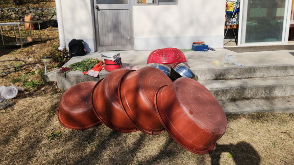 공양팀은 설거지와 바닥 청소를 마친 뒤, 처음보다 더 깨끗하게 뒷정리를 했습니다. 김장에 쓰인 큰 대야와 선반들도 깨끗이 닦아 물기를 뺍니다. 수련원 마당은 다시 조용한 원래의 모습으로 돌아갔습니다. 한 달여 간 행사를 준비한 지회 봉사자들도 앞치마와 머리 두건을 벗으며, 한 해를 잘 마무리했다는 감사의 인사를 나눈 뒤 각자의 일상으로 돌아갔습니다.