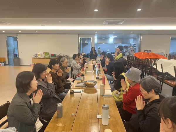 김장을 마친 뒤 봉사자들은 중간 정리를 하고 닫는 나누기를 위해 다시 모였습니다.