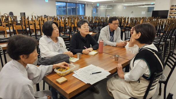 공양간 꼭지를 맡은 안명숙(JTS안산다문화센터 사업팀장)님과 실무 총괄 박희준(JTS안산다문화센터 실행위원장)님은 정토사회문화회관 공양간 꼭지 이은숙 님과 당일 공양간 준비와 내부 사용 방법 등을 논의하였습니다. 처음 기획할 때는 막연한 생각에 걱정스러웠지만 대화를 통해 가벼워졌고, 혼자가 아니라 함께 준비하는 것임을 알게 되었습니다.