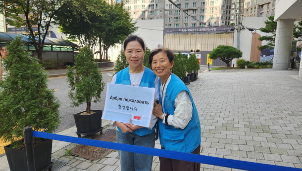 고려인들은 정토사회문화회관에 처음 방문하였습니다. 가족들과 함께 온 고려인들이 많았습니다. 밝은 표정으로 입장하는 모습을 보니 더욱 반가운 마음이었습니다. 앞쪽부터 앉을 수 있도록 안내하고 강연 에티켓도 알려주었습니다. 태권도 공연팀과 거문고 연주자 안내도 일사분란하게 이루어졌습니다.