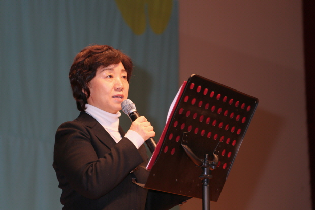 * 7차 백일기도 실천과제 결과를 발표하는 대전정토회 강명숙님.