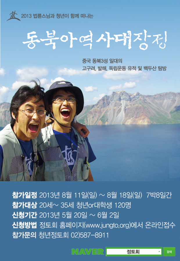 중국 동북 3성 일대의 고구려, 발해, 독립유적 탐방을 법륜스님과 청년이 함께 가요!
