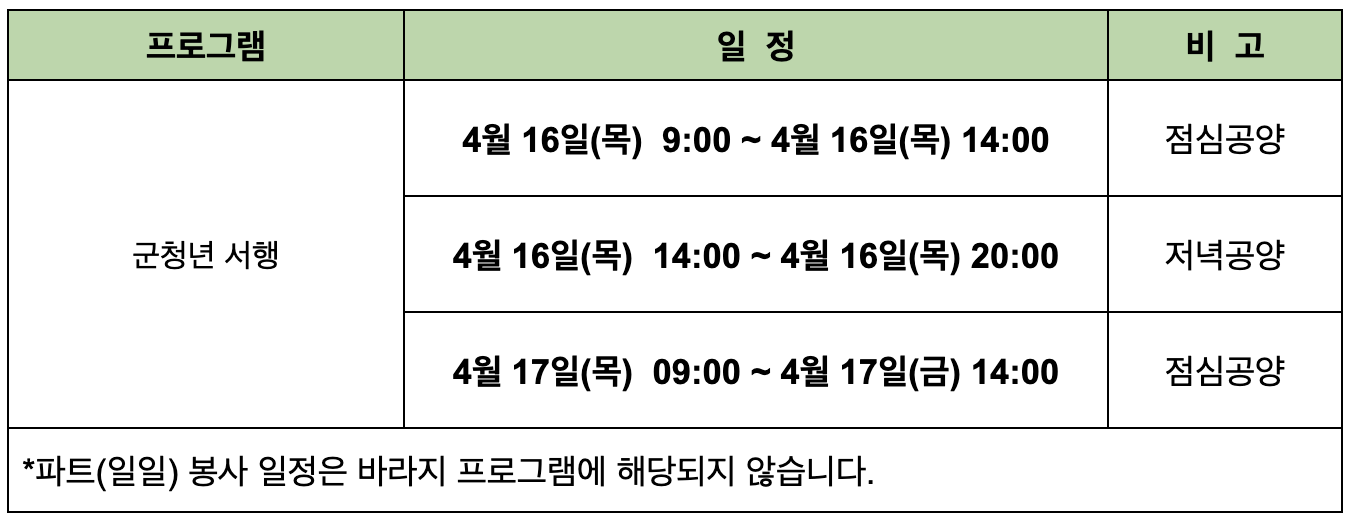 ◦ 공양 봉사(하루 한끼) _ 멈춤과살핌 명상 포함