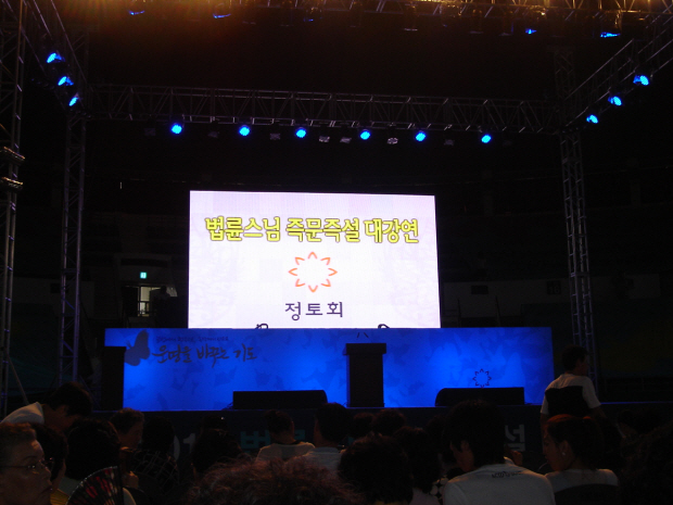 청각 장애 우들의 질문을 수화로 통역을 하는 인솔자를 대신해서 법륜스님이 직접 읽으셨다.