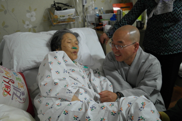 인천강연장으로 가는 길에 문경에 상주대중으로 계시던 조정남보살님 병문안을 다녀왔습니다. 기력이 많이 쇠하신 모습이었지만, 스님을 보시더니 반가워했습니다. 스님께서는 보살님 손을 꼭 잡으신 채 농사짓는 이야기, 밥짓는 이야기등 일상에서 노인분들이 잘하는 일들을 언급하며 짧지만 함께 시간을 보내셨습니다. 가족들은 보살님께서 오랜만에 웃으셨다고 좋아하셨습니다.