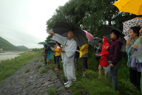 스님께서도 비를 맞으면서 우리에게 계획된 모든 것들을 보여주기 위해 애를 쓰셨고, 참가자들도 비를 맞아 추운 가운데에서도 하나라도 더 보기 위해 스님 뒤를 따랐습니다.