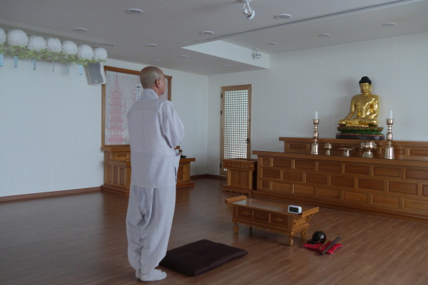 어제 대전법당에서 주무신 스님께서는 새벽예불과 기도를 대전법당 신도님들과 함께 하신 후 아침 공양을 하시고 청주강연이 열리는 CJB미디어센터로 향했습니다. 강연장으로 가는 길에 잠시 새로 이전한 청주법당에 들렀습니다. 오늘 청주강연이 열리는 날이다 보니 법당문이 잠겨 있어서 비밀번호를 확인한 후 들어가셔서 법당을 둘러보았습니다.