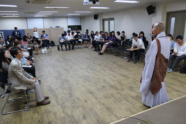 “지금은 조금 어려울지 몰라도 사회를 한 발 앞서가야 사회적 리더십을 가질 수 있습니다. 붓다가 우리에게 보여주지 않았습니까? 카스트를 부정했다든지, 비구니 제도를 인정했다든지, 이런 건 그 당시에는 상상도 못 했던 일이잖아요.