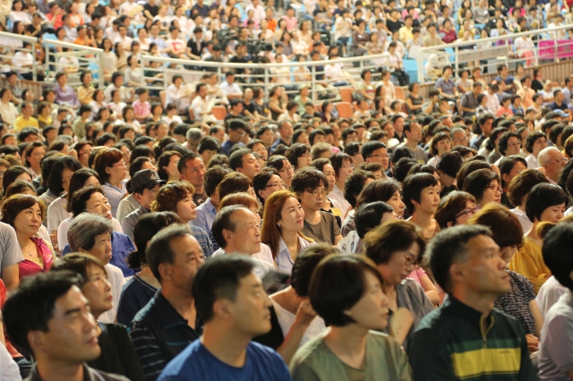 입추가 지나 더위가 한 풀 꺾인 가운데 전국 각지에서 모인 정토행자들이 알알이 여무는 곡식처럼 김천 실내체육관을 가득 채웠습니다.