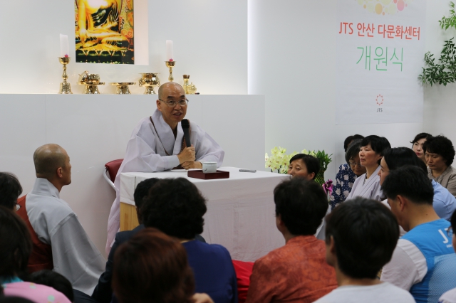 이어서 스님은 JTS의 창립 취지를 이야기하면서 그 연결선 상에서 오늘의 다문화센터를 개원하게 되었음을 상기시켜 주었습니다.