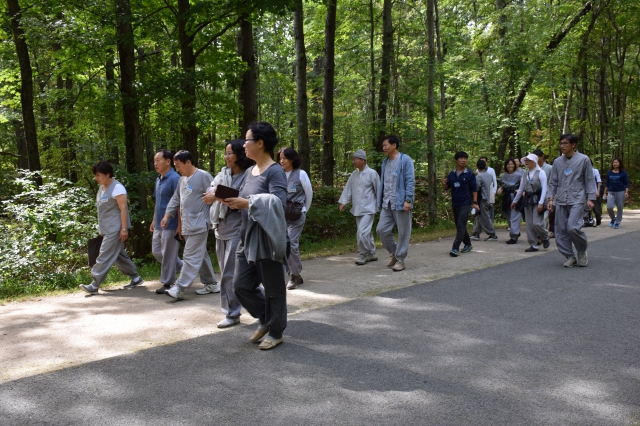 점심 공양이 끝나고 스님은 해외 정토행자대회에 참석 중인 대중들과 함께 잠시 근처 공원으로 산책을 다녀왔습니다. 예년에는 한나절 관광 시간이 있었는데 올해는 모두들 의논할 일이 많다고 관광 시간을 없앴습니다. 스님은 그렇다면 간단한 산책 시간이라도 갖자고 해서 근처의 공원을 다녀왔습니다. 짧게나마 점심 시간을 조금 늘려 산책을 다녀오니 해외 정토행자님들도 조금은 아쉬운 마음을 달랠 수 있었습니다.