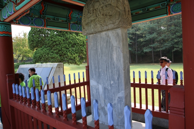 그리고 맞은편에 있는 중봉 조헌 선생의 일군순의비를 참배했습니다. 순의비에는 의병장 조헌 선생이 이끄는 칠백의사가 순국하기까지의 사적이 기록되어 있었습니다. 일제 강점기에 폭파된 것을 주민들이 일제의 눈을 피하여 땅속에 묻어 두었다가 광복 후에 다시 파내어 보관하다가 현재의 모습으로 복원하였다고 합니다.