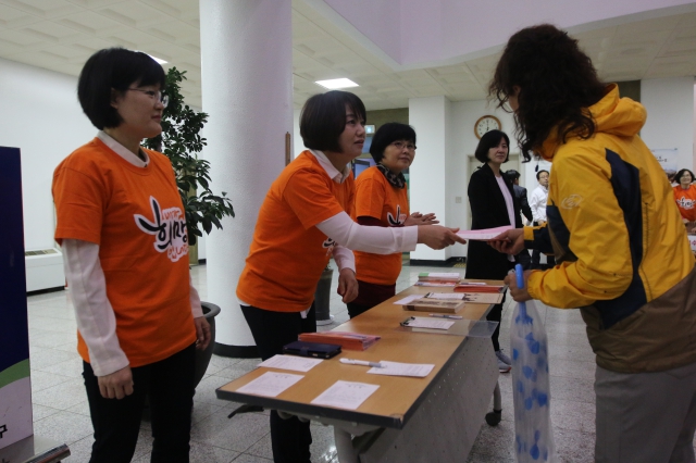 ▲ 구민들을 반갑게 맞이하는 송파정토회 자원봉사자들