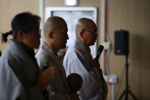 “우러러 발원하옵니다. 오늘 문경 정토수련원에서 저희 정토행자 대중 일동은 5일간 부처님의 가르침에 따라 정진한 후 이와 같이 부처님께 예배하고 참회하면서 발원하옵니다.